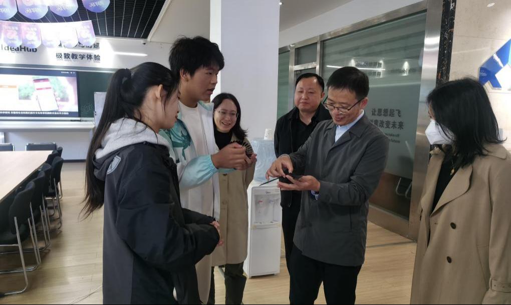 罗建廷一行在先后参观我校智能智造实训空间及襄职天空创业园。罗建廷在智能智造实训空间通过实地参观和听取相关负责同志介绍后,对我校校企共建合作模式和创客空间创新型高技能人才培养路径给予了高度肯定。