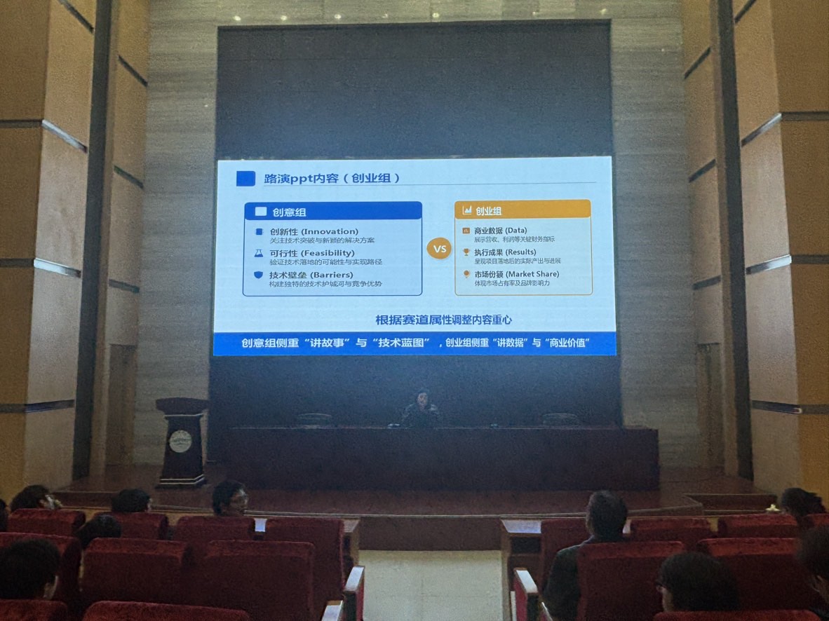培训分别于3 月 26 日晚在主校区图书 1 号报告厅、3 月 31 日下午在高铁南路校区图书馆报告厅举行,覆盖各学院参赛学生、指导教师及对创新创业感兴趣的同学,共计二百余人。